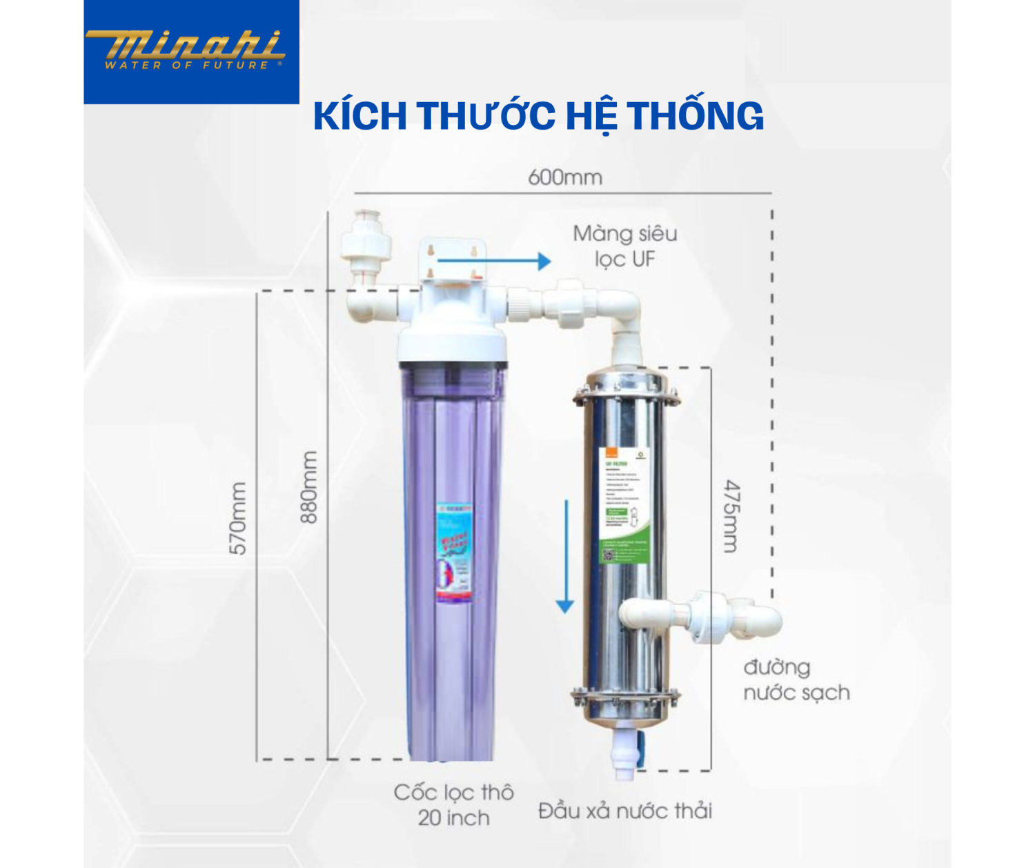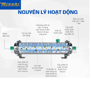 Công nghệ siêu lọc UF loại bỏ 99.99% vi khuẩn, chất hóa học kích thước > 0.01 micron